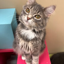 Buddies Spaghetti Friendly girl Type Cat Sex Female Size Small Breed Domestic Medium Hair Color Gray Tabby Striped Date of Birth 6/11/2025 See more of Spaghetti Interested in adopting Spaghetti? Learn more about how our adoption process works and what to expect when you visit. Learn more More cats like Spaghetti