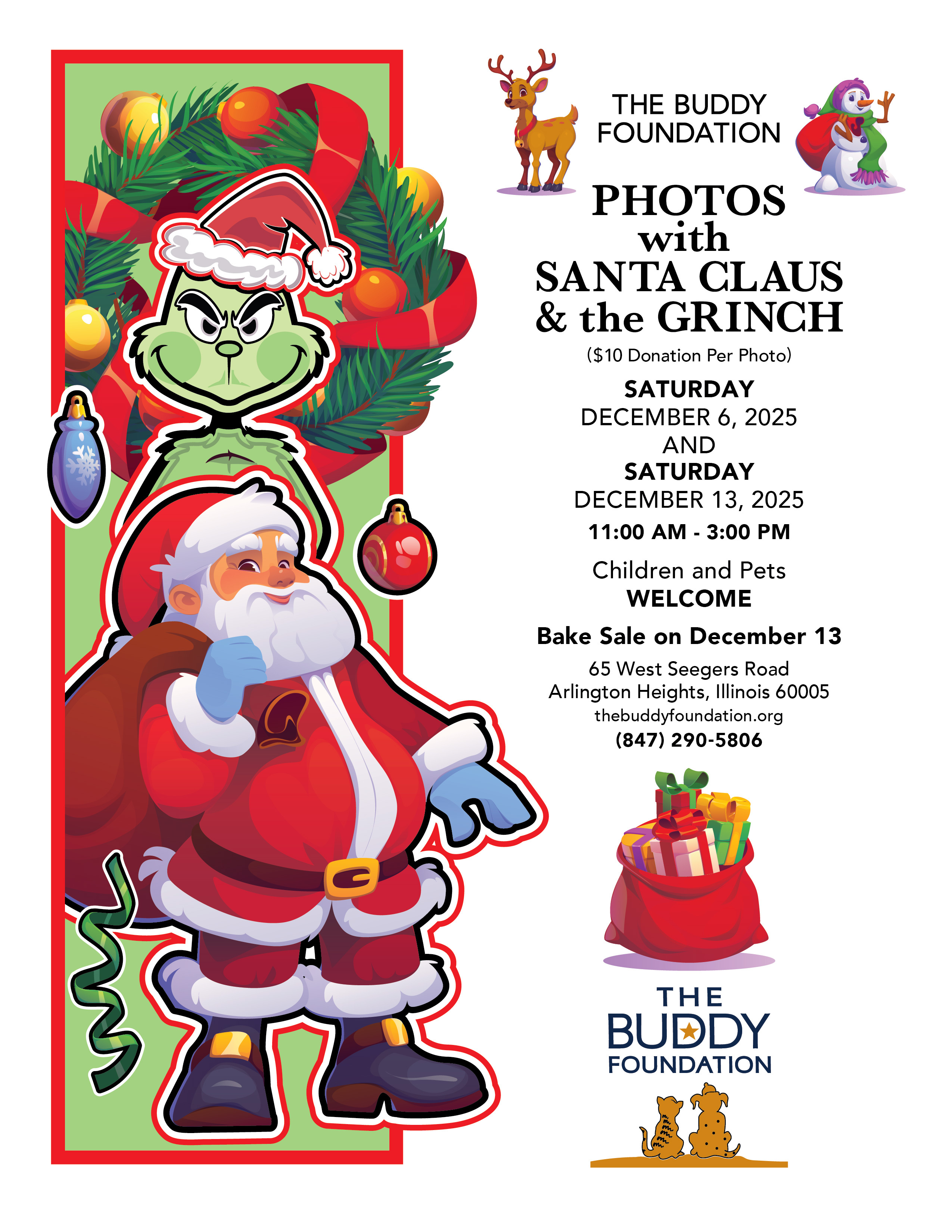 Please join us for photos with Santa and the Grinch! Children and pets welcome. $10 donation per photo.