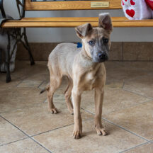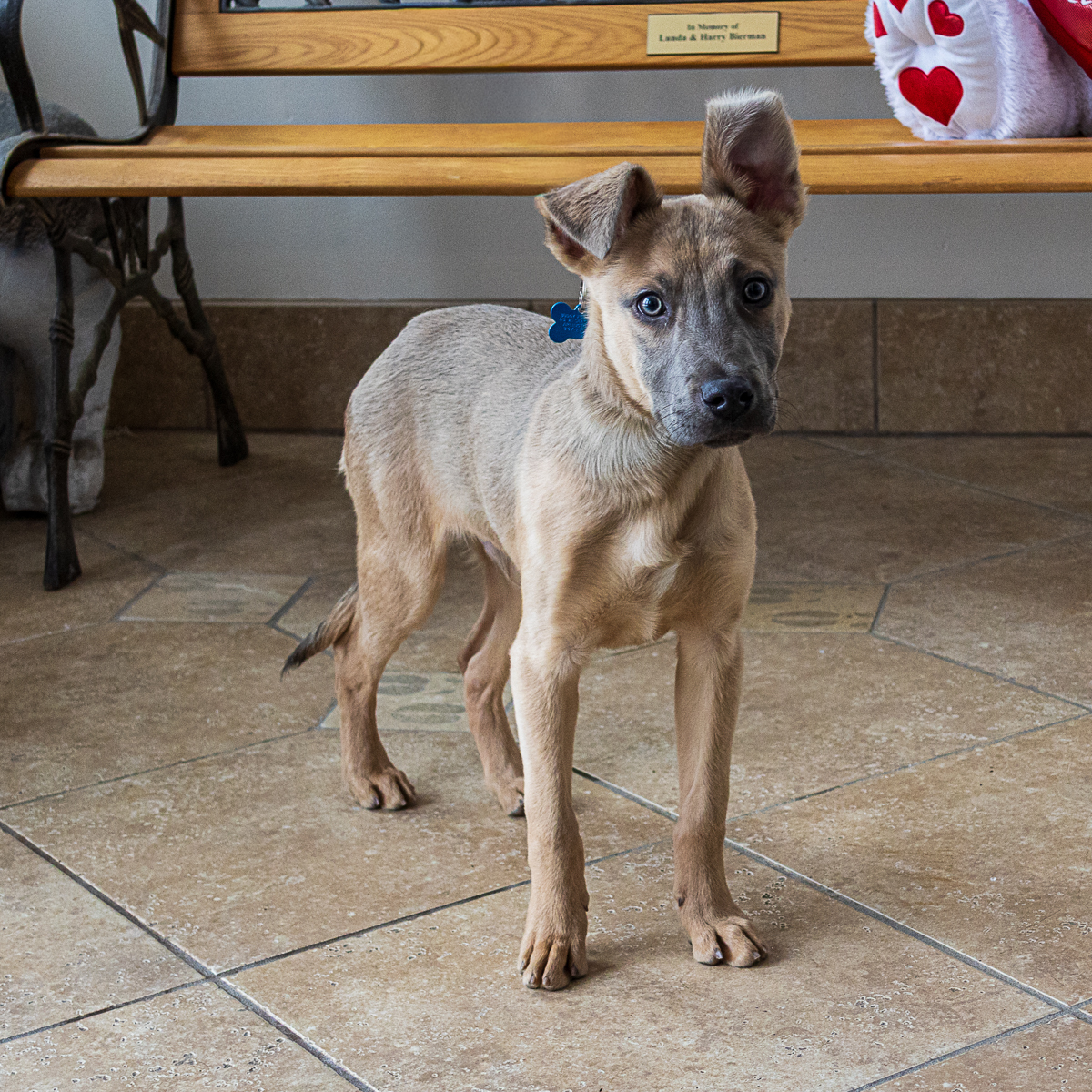 Say hello to Eddie! Eddie is a 5 month old Shepherd mix who weighs about 20 pounds. Eddie is a wonderful pup with endless energy that he loves to expend by playing with toys and running around the yard or playroom at Buddy. His favorite is playing fetch with anything that squeaks! He is learning commands and how to walk on a leash while also learning all about the world. Eddie has the softest fur and big soulful eyes you could stare at for days. He has a confident disposition and likes other dogs. We think he'd make an excellent addition to any home. If you'd like to meet Eddie, please come by during open hours or call us to make an appointment. He'd love to meet you!