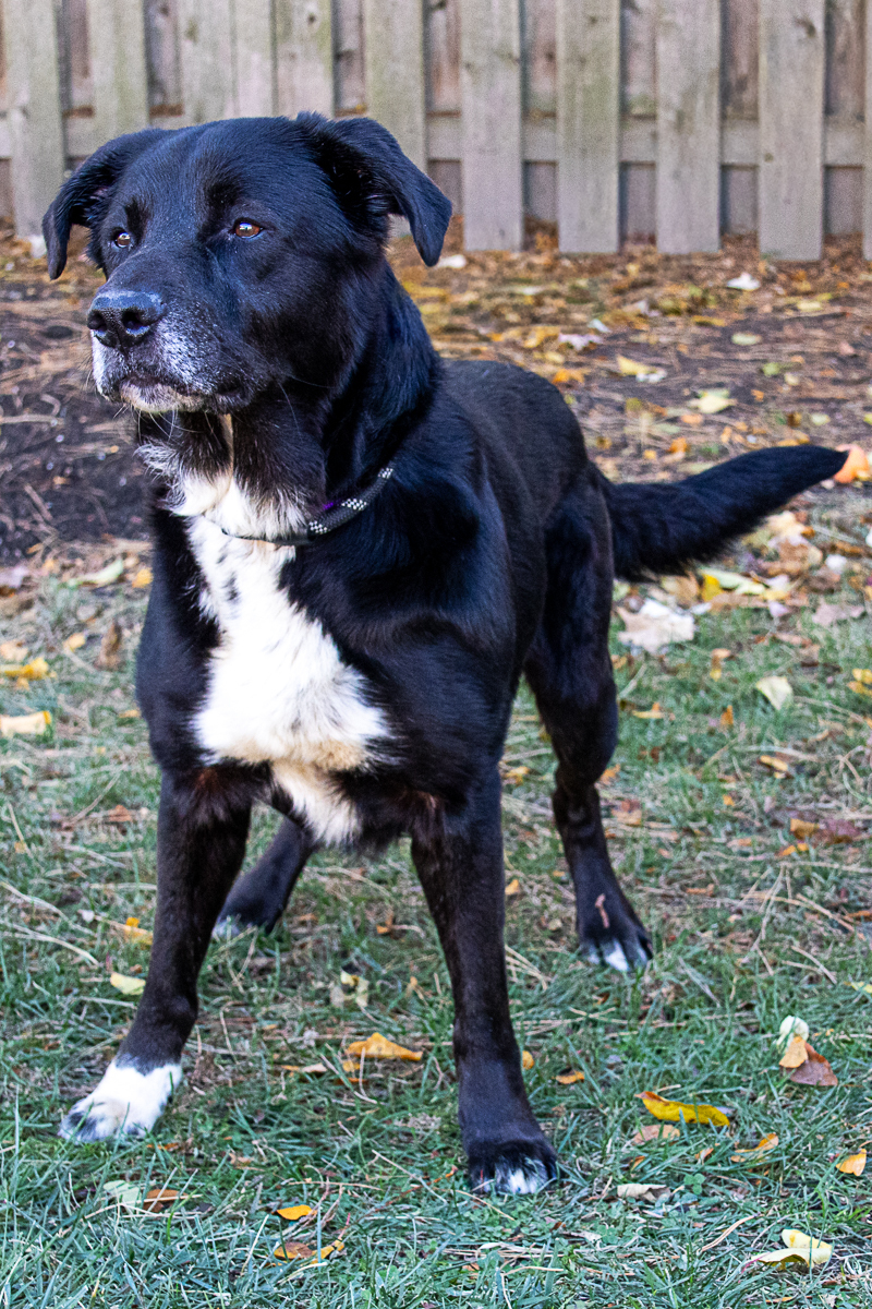 My history, you ask? Okay, here you go. I'm about 5 years old, just shy of 60 pounds. Yes, I am an incredibly handsome black and white lab mix. I was tied up outside a daycare facility and abandoned. Animal Control came and got me where I then spent the next two months. The folks at animal control said I was a happy dog that was always smiling. The Buddy Foundation decided I was special and gave me a second chance at finding a new family.