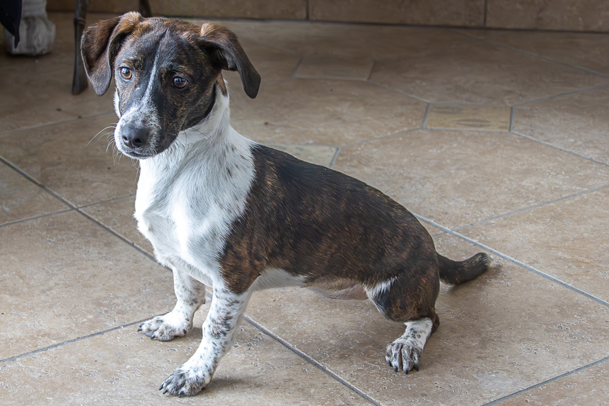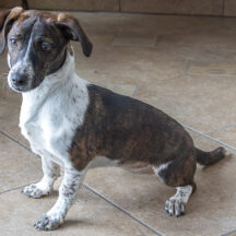 Meet Winnie! Winnie is a one year old doxy mix who weighs about 16 pounds! Winnie may be mini but there is nothing mini about her energy and love for toys (especially tennis balls)! Winnie came in with her sister (Greta) and their mom when we pulled them from an overcrowded downstate facility. We are so happy we were able to save these precious girls. Winnie is a pup still so she will need a little training and someone willing to put in that time as well as help her expend her puppy energy! Winnie is also very loving and will let you know that she wants affection and attention with a paw on your arm. Let’s get this sweet girl into a loving home asap! Come meet her today!